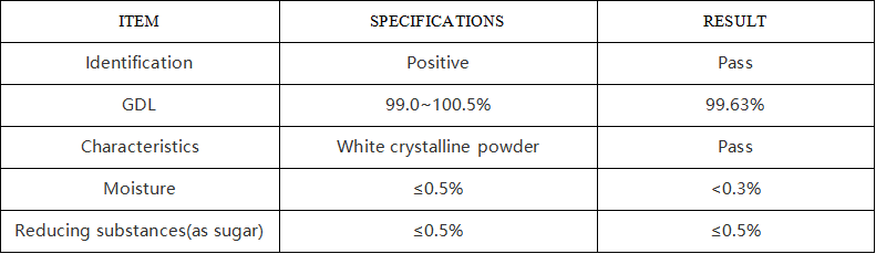 Glutaric acid-δ-lactone can be classified into pharmaceutical grade, food grade and cosmetic grade. It complies with the latest requirements of China's Food Safety National Standard (GB7657), the United States Pharmacopeia (USP), the Food Chemicals Codex (FCC), and the EU Regulation (EU) No 231/2012.
