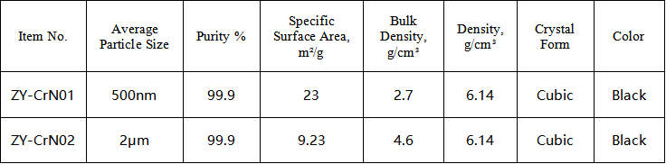 The powder of this product has a small and uniform particle size, with high surface activity; it is stable in the presence of water, acids, and alkalis. It has excellent adhesion properties, as well as good corrosion resistance and oxidation resistance. Moreover, due to its excellent physical and mechanical properties, it is the only material among the nitrides that possesses antiferromagnetic properties.